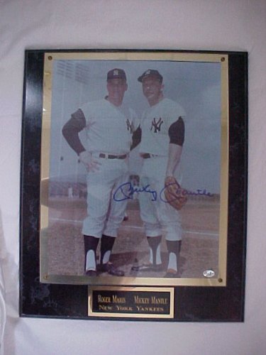 THIS IS AN 11X14 BLACK AND WHITE PHOTOGRAPH HAND SIGNED BY MICKEY MANTLE. THIS PHOTO IS MOUNTED TO A 15X18 BLACK MARBLE WOODEN COMPOSITE PLAQUE. THIS PHOTOGRAPH WAS HAND SIGNED AND THE SIGNATURE IS NOT A PRINT. EACH AUTOGRAPHED ITEM COMES WITH A CERTIFICATE OF AUTHENTICITY AND TAMPER-PROOF HOLOGRAM.Check its out related products of Mickey Mantle Hand Signed Autographed New York Yankees 11x14 Photo w/ Roger Maris
