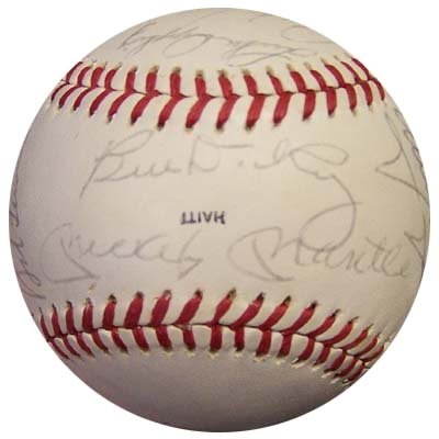 This is a Texas Rangers Baseball that has been hand signed by 12 players. Autographs include: Bill Dickey, Mickey Mantle, Luke Appling, Al Kaline, Monte Irvin, Lefty Gomez, Eddie Mathews, Billy Herman, Bob Feller, Early Wynn, Ernie Banks, and Bob Lemon. The autographs have been authenticated by PSA/DNA. It comes with their full page certificate of authenticity.Check its out related products of MLB Hall Of Famers Autographed/Hand Signed Baseball (12 Autos) Mickey Mantle, Gomez, Appling PSA/DNA